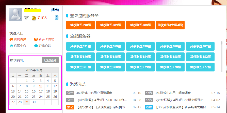 签到截图:(签到地址http://wan.360.cn/game/wxlm)